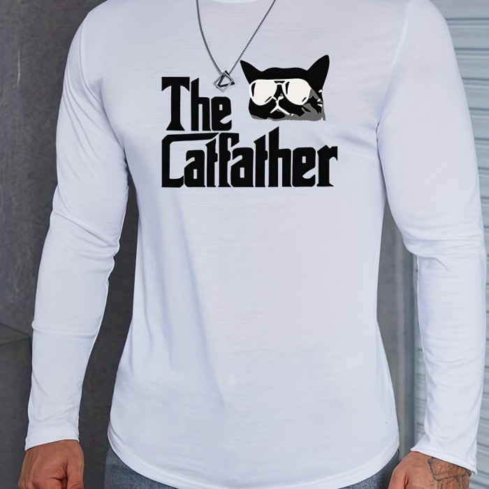 Cat Animal Print, Men's Comfy Fit Long Sleeve T-shirt, Warm And Sporty Top Clothing